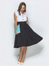 Офисное платье с завышенной линией талии из струящегося софта. Модель с рукавом «крылышко», декорирована контрастными пуговицами на полочке. Отложной воротник украшен тесьмой. Юбка «полусолнце» визуально скорректирует область бедер. Застегивается молнией сбоку. Изделие подойдет обладательницам типов фигуры «груша», «прямоугольник».