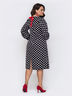 Легкое платье-трапеция из софта в горох с контрастными завязками на спинке. Сзади разрез. Пояс в комплект не входит.