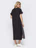Полосатое платье свободного кроя. Модель дополнена аппликацией из пайеток.