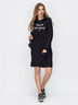 Платье прямого кроя с капюшоном и вместительным карманом «кенгуру». Изделие дополнено яркой надписью.