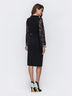 Утонченное платье приталенного кроя с воротником-стойкой. Изюминка модели – полупрозрачная кокетка и длинные рукава из мягкой сетки с узором, вышитым гладью. Сзади разрез и скрытая молния по спинке. Прекрасно подчеркнет плавные контуры фигуры «песочные часы».