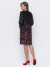 Шифоновое платье свободного кроя. По переду горловины заложены крупные складки. Модель с длинным рукавом и широким манжетом из кружева.