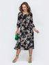 Расклешенное платье из софта в цветочный принт. Модель с отрезным лифом и квадратным вырезом декольте. Застёгивается на потайную молнию.