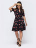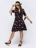 Кокетливое платье из мягкого штапеля с фигурным вырезом на полочке. Короткие рукава с разрезами на завязках, по низу волан с рюшей. Талия отрезная с эластичной деталью в поясе. Ремень в комплект не входит.
