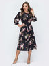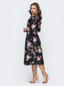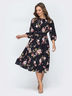 Расклешенное платье из софта в цветочный принт. Предусмотрена эластичная деталь в поясе и рукавах. Пояс с пряжкой в комплекте.