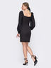 Платье-футляр с фигурным вырезом горловины. Объёмный рукав с эластичной деталью по плечевому шву. Изделие застегивается на молнию сзади.