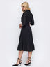 Черное платье из прошвы с воротником-стойкой. Рукав-реглан длиной ¾. Модель отрезная по талии с юбкой-трапецией, дополненной воланом по низу. Сбоку потайная застёжка-молния. Изделие частично на подкладке. Ремень в комплект не входит.
