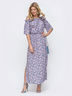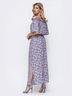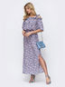 Платье-макси в мелкий цветочный принт из мягкого штапеля с открытой линией плеч. Горловина на завязках и талия выполнены эластичной тесьмой. По бокам высокие разрезы и удобные карманы.