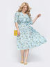 Расклешённое платье из принтованного софта с лифом на запах. Модель с цельнокроеным рукавом и эластичной деталью в поясе. По бокам расположены прорезные карманы. Тканевый пояс в комплекте.