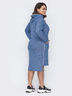 Платье в спортивном стиле с капюшоном на кулиске. Модель прямого кроя с удлиненной спинкой. Декорировано молниями по бокам. На полочке предусмотрены прорезные карманы.