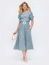 Повседневное платье в ретро-стиле из лёгкого софта в крупный "горох". Силуэтности изделию придаёт эластичная деталь в поясе. Для удобства в боковых швах предусмотрены карманы. Широкий пояс из основной ткани с массивной пряжкой в комплекте.