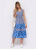 Клетчатое платье без рукавов из сочетания двух тканей: хлопка и ярких вставок из софта в горох. Талия на кулиске. V-образный вырез горловины визуально удлиняет шею и подчеркивает красивые ключицы.