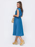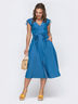 Расклешенное платье из тонкого джинса с треугольным вырезом. Талия отрезная с вафельной сборкой на кулиску, переходящую в кокетливые завязки. В боковых швах карманы, спереди разрез.
