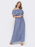 Платье-макси с открытой линие плеч. Модель с эластичной деталью по вырезу, дополнено широкой оборкой.