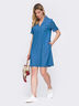 Лаконичное платье-трапеция из тонкого джинса. Изделие дополнено накладными карманами на полочке и в боковых швах. Практичный крой модели умело скроет проблемные зоны любого типа фигуры.
