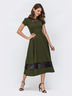 Элегантное платье-миди из креп-дайвинга с расклешенной юбкой. V-образный вырез горловины дополнен ажурным кружевом. Застёгивается на скрытую молнию по спинке. Станет идеальным вариантом для обладательниц типа фигуры «прямоугольник», «треугольник».