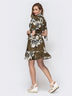 Платье на кнопках по планке, с эластичной деталью по талии. Декорируется оборкой по низу. Рукава с завязками. Дополнено тонким поясом из основной ткани.