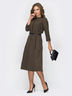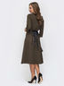 Расклешенное платье, декорированное репсовой лентой. Застегивается на молнию сзади. Дополнено широким поясом с репсовой лентой.