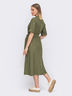 Повседневное платье с расклешенной юбкой. Модель отрезная по линии талии, сзади эластичная деталь. На полочке декоративные кнопки. Изделие застёгивается на потайную молнию по спинке. Пояс из основной ткани в комплекте.