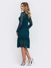 Вечернее платье прямого кроя из ажурного гипюра с широкой оборкой по низу. Модель дополнена трикотажной съёмной комбинацией на узких бретелях. Станет идеальным вариантом для обладательниц типа фигуры «прямоугольник», «песочные часы», «груша».