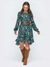 Расклешенное платье в мелкий цветочный принт с широким воланом понизу. Ремень в комплект не входит.