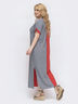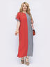 Двухцветное платье прямого кроя с высокими разрезами. В боковых швах удобные карманы. Застегивается на пуговицу сзади у горловины.