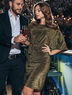 Яркое платье из мерцающего люрекса с рукавом «летучая мышь». Силуэтности изделию придаёт пояс из основного материала. Отлично подойдёт обладательницам фигуры типа “песочные часы” и “прямоугольник”.