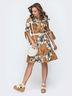 Платье на кнопках по планке, с эластичной деталью по талии. Декорируется оборкой по низу. Рукава с завязками. Дополнено тонким поясом из основной ткани.