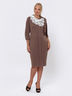 Женственное платье приталенного силуэта из костюмной ткани. Модель дополнена съёмным шарфом с ажурным, контрастным кружевом. Застёгивается на молнию сзади.