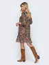 Расклешенное платье из легкого принтованного шифона. Горловина регулируется завязками. В изделии предусмотрена подкладка.