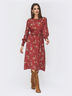 Расклешённое платье из костюмной ткани в мелкий цветочный принт. Изделие с широкой эластичной деталью в поясе и манжетах. Отлично подойдёт обладательницам фигуры «прямоугольник», «песочные часы» и «груша».