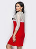 Милое платье-трапеция. Модель с круглой горловиной и рукавами 3/4. Изделие с гипюровой кокеткой и рукавами. Линия груди на полочке дополнена контрастным тканевым бантом. Застегивается на пуговку сзади.