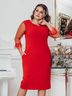 Коктейльное красное платье с прозрачным рукавом ¾ , декорированным отделкой из искусственных перьев. Модель прямого кроя с V-образным вырезом по спинке и удобными карманами в боковых швах. Застегивается сзади на скрытую молнию.