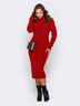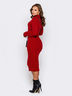 Облегающее платье длины миди с воротником-стойкой. Выполнено вязкой с косами.