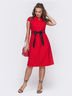 Яркое красное платье из хлопка с рукавом-крылышко. Модель отрезная по талии, дополненная контрастным поясом из репсовой ленты в комплекте. Застегивается на потайную молнию сбоку и функциональные пуговицы по планке.