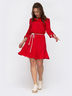 Яркое платье-мини с отложным воротником и воланом по низу. Модель отрезная по талии с рукавом ¾ на завязках и резинкой в поясе. Застегивается спереди на пуговицы. В комплекте контрастный пояс-шнурок.