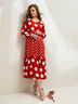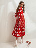 Платье свободного кроя в крупный горох с воланом. Манжет выполнен эластичной деталью.