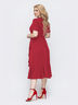 Красное платье с воланами. На груди запах не зафиксирован. Застегивается на скрытую молнию по спинке. Пояс в комплекте.