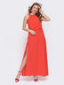 Длинное платье с американской проймой и разрезами по бокам. Застегивается скрытую змейку сбоку и пуговицу по спинке.