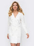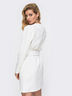 Эффектное платье-пиджак из плотной костюмной ткани. Изделие с прорезными карманами в боковых швах застегивается на пуговицы по длине. Пояс с пряжкой в комплекте.