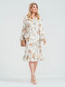 Летящее платье в нежный цветочный принт с оборками. Талия и горловина выполнены резинкой. На полочке изделие декорировано рядом пуговиц.