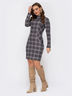 Силуэтное платье из трикотажа в клетку. Изделие с длинным рукавом и невысоким цельнокроеным воротником. Отлично подойдет обладательницам типов фигуры «песочные часы» и «прямоугольник».