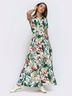 Расклешенное платье-макси в цветочный принт. Модель отрезная по линии талии. Пояс с пряжкой в комплекте.