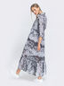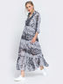 Шифоновое платье макси с воланом по низу. Модель с рукавом ¾ на завязках. Застегивается на пуговицы по полочке. В комплекте съемное платье-комбинация.