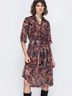 Платье-миди из шифона с отложным воротником, отрезное по талии, мягкие складки на юбке и карманы в боковых швах. Застегивается на пуговицы по полочке. Рукав с отворотом и патами, зафиксированными пуговицами. Съёмный пояс, из основного материала, в комплекте. На подкладке.