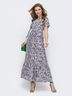 Платье-макси с цветочным принтом. Изделие с широким воланом по низу.