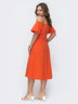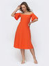 Яркое платье приталенного силуэта с оголенными плечами. Горловина выполнена эластичной деталью.