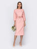 Закрытое платье приталенного сиилуэта из костюмной ткани. Модель с глубоким V-образным вырезом по спинке и рядом пуговиц. Широкий пояс в комплекте. Идеально для обладательниц фигуры "песочные часы" и "прямоугольник".