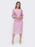 Закрытое платье приталенного сиилуэта из костюмной ткани. Модель с глубоким V-образным вырезом по спинке и рядом пуговиц. Широкий пояс в комплекте. Идеально для обладательниц фигуры "песочные часы" и "прямоугольник".