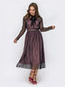 Романтичное платье с расклешенной юбкой и воротником "аскот". Силуэтности изделию придаёт эластичная тесьма на поясе. В основе- платье из тонкой костюмной ткани Отлично подойдёт обладательницам фигуры типа "песочные часы" и "груша".